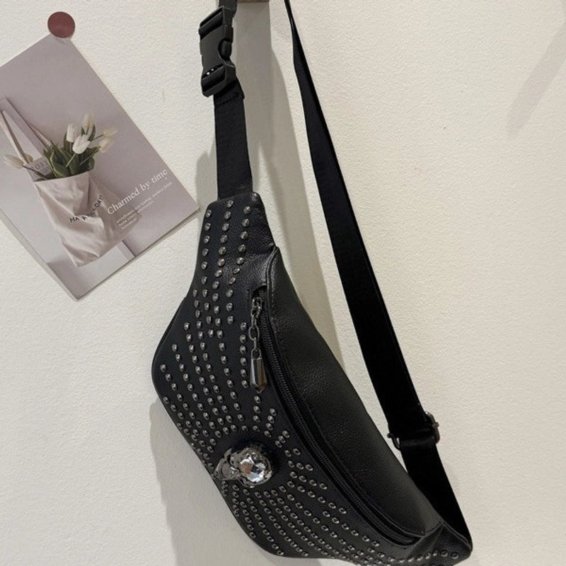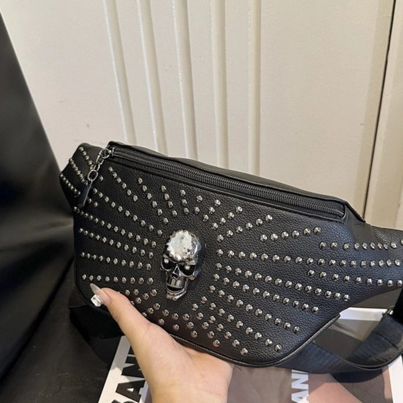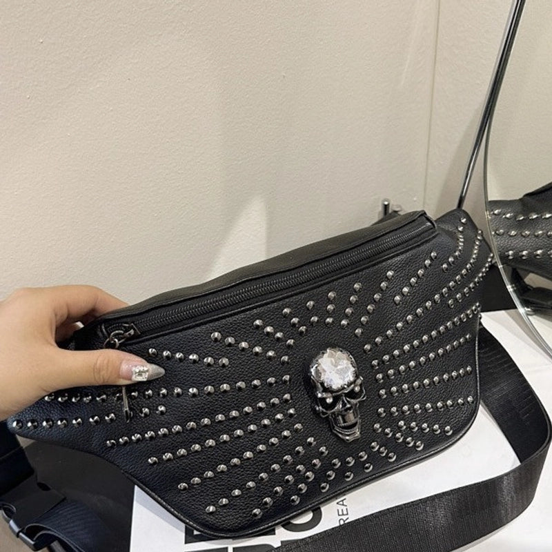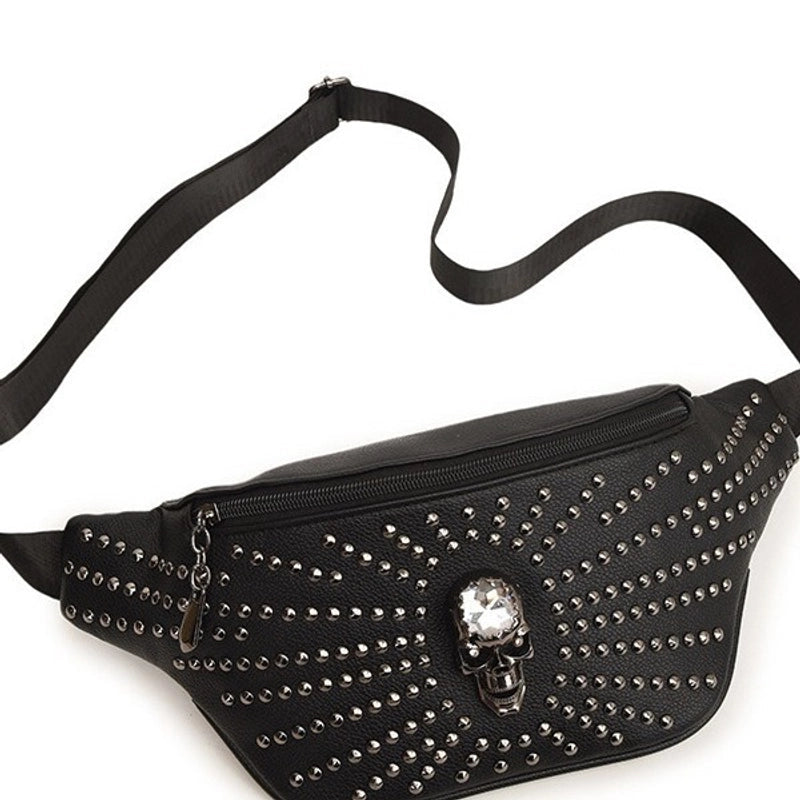 Unisex Skull Pu Leather Zipper Crossbody Bag Fanny Pack
