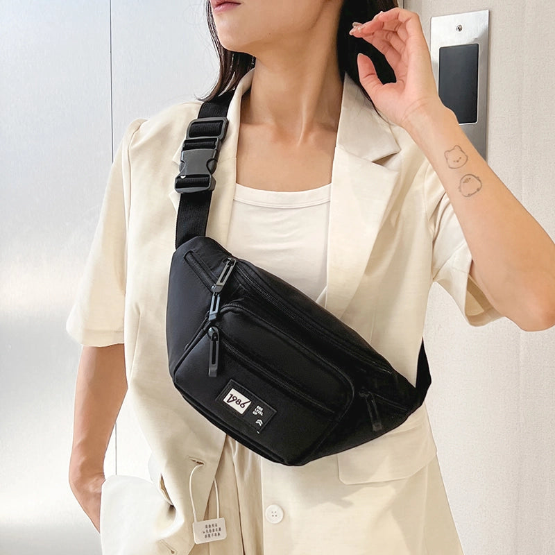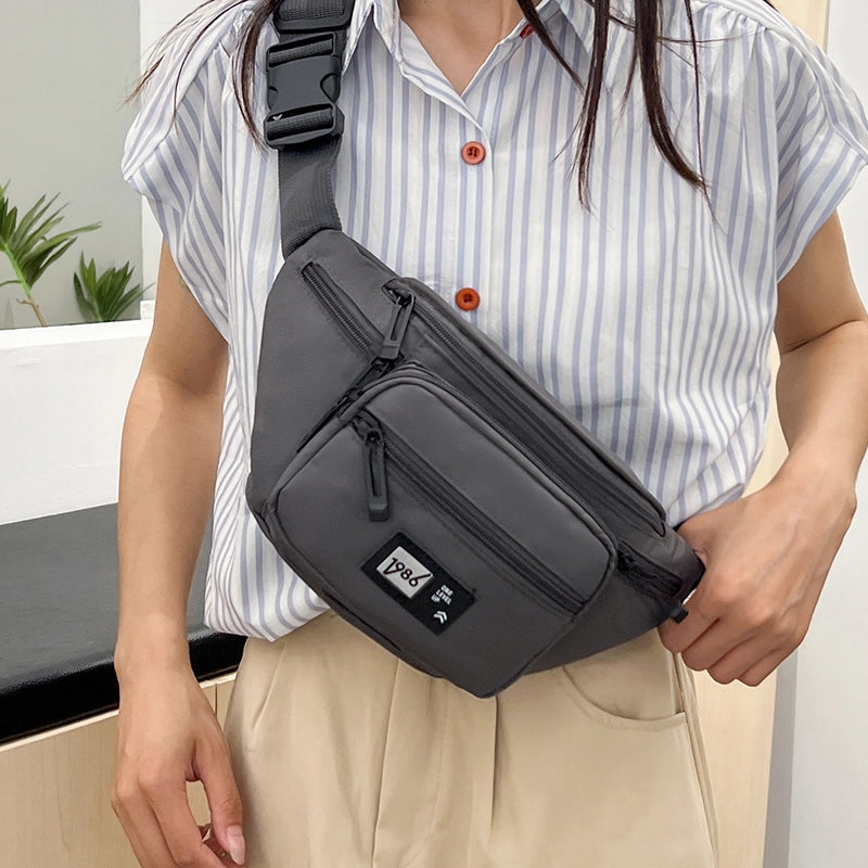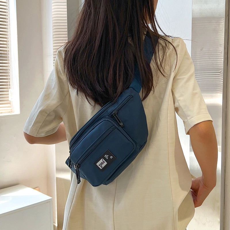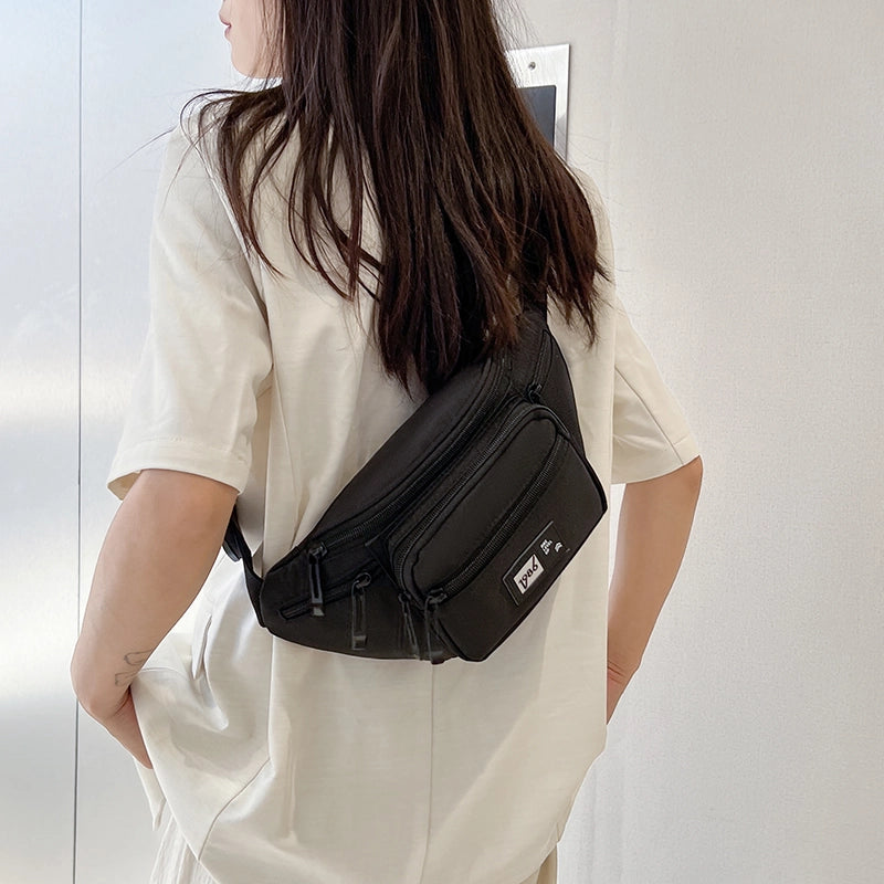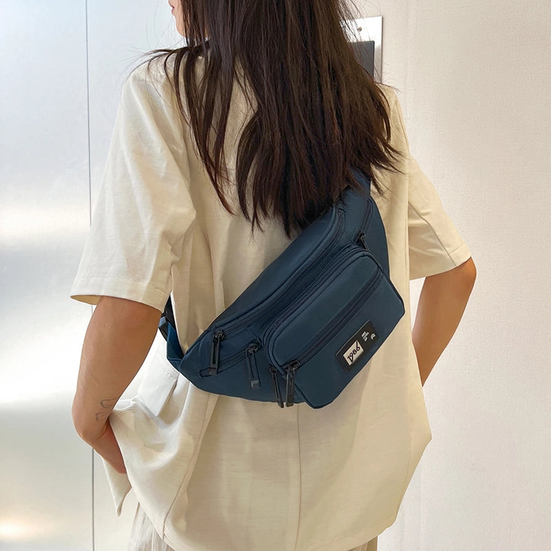 Unisex Solid Color Nylon Sewing Thread Zipper Crossbody Bag Fanny Pack